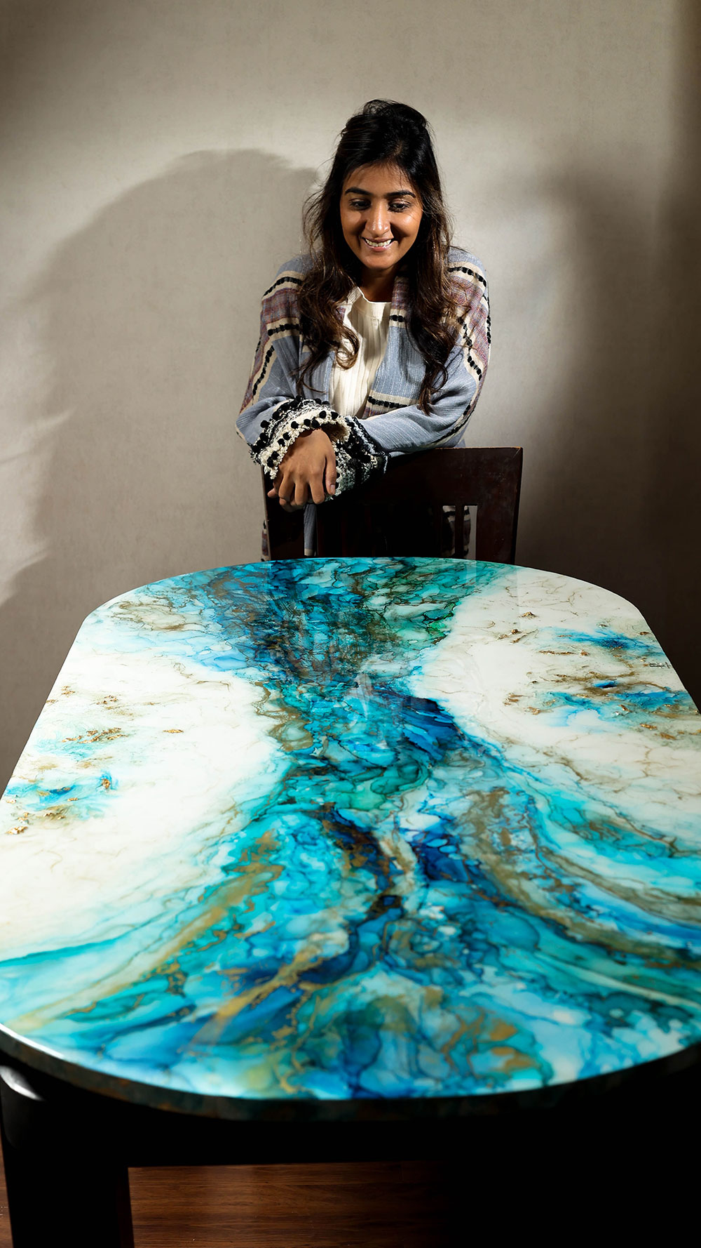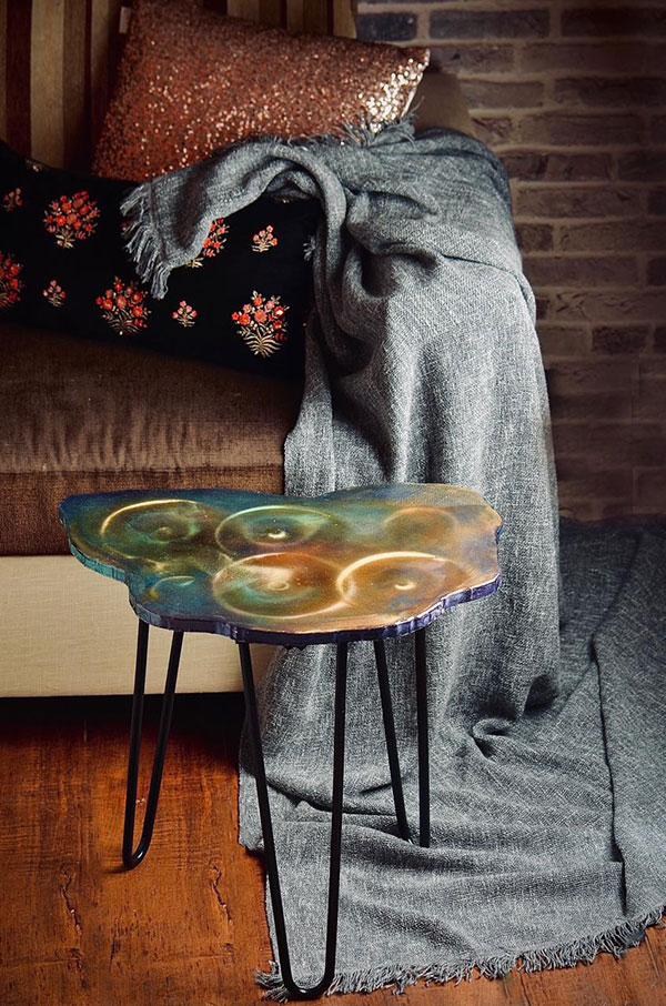 Galaxy table designed with magnetized pigments technique to give ethereal effect [approx. size 20”]