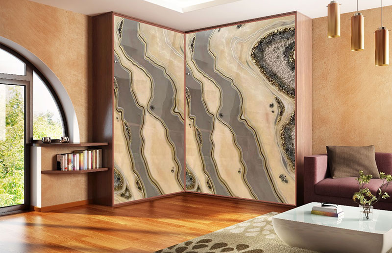Three-panel wardrobe with seamless agate design and 3-D geode formation in crystals [6’ x 5.5’]