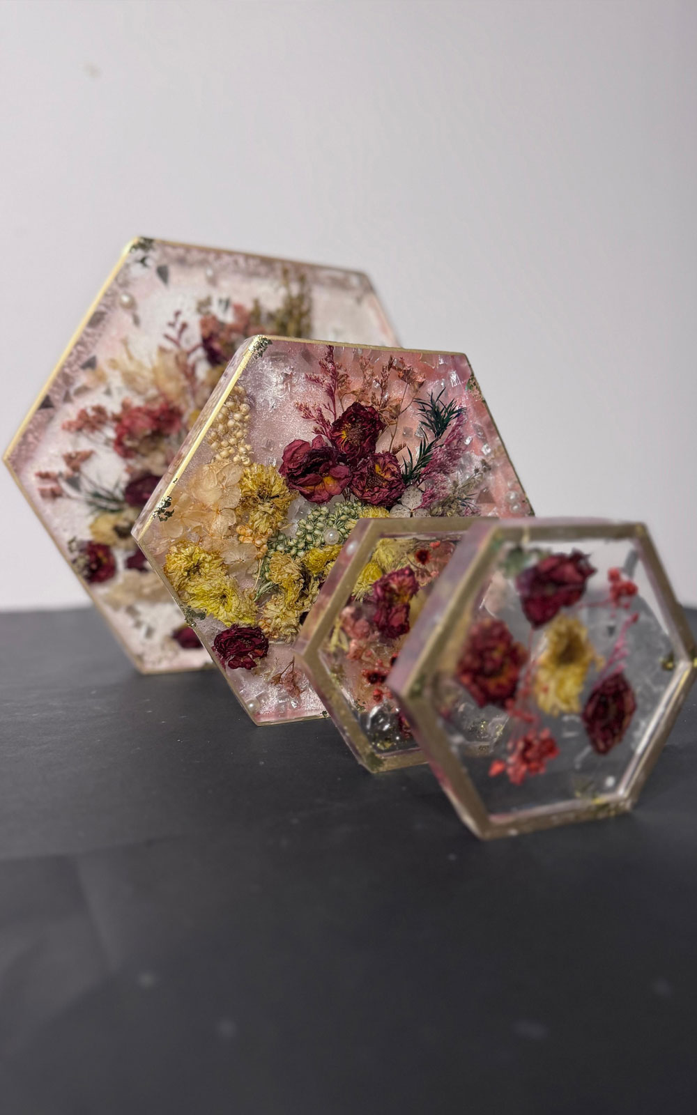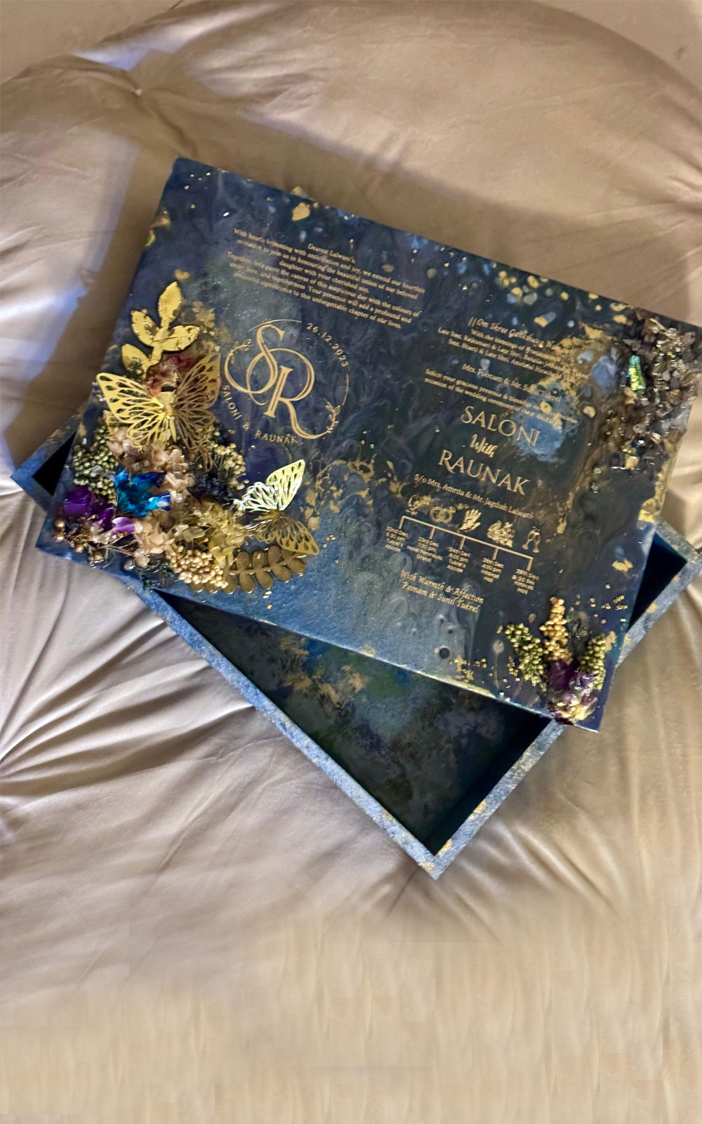 Let us help you encase your memories in the magnificent medium of resin. From personalized wedding invitation boxes to engagement trays to embedding your floral memories from your special occasion in an everlasting, bespoke piece, we can do it all.