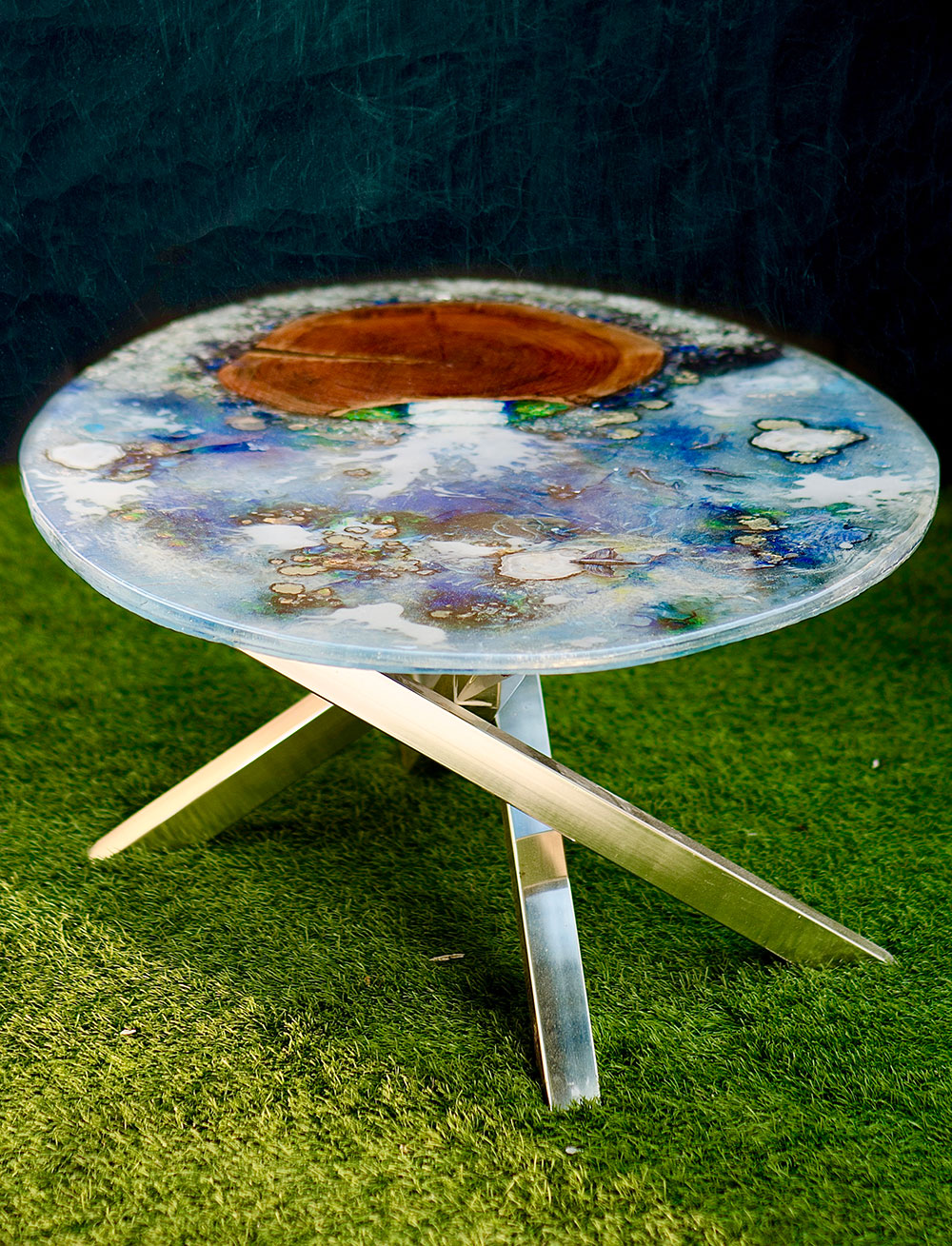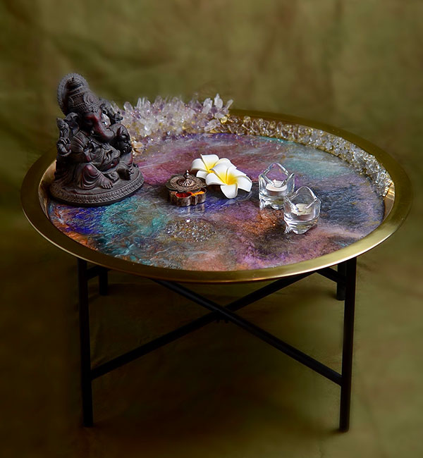 Galaxy table designed with magnetized pigments technique to give ethereal effect [approx. size 20”]
