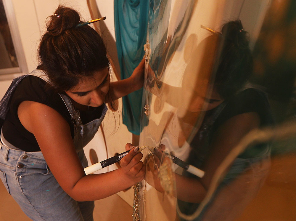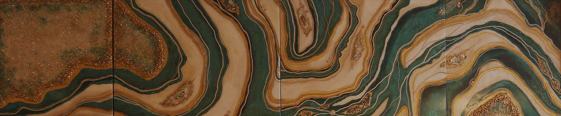Three-panel wardrobe with seamless agate design and 3-D geode formation in crystals [6’ x 5.5’]