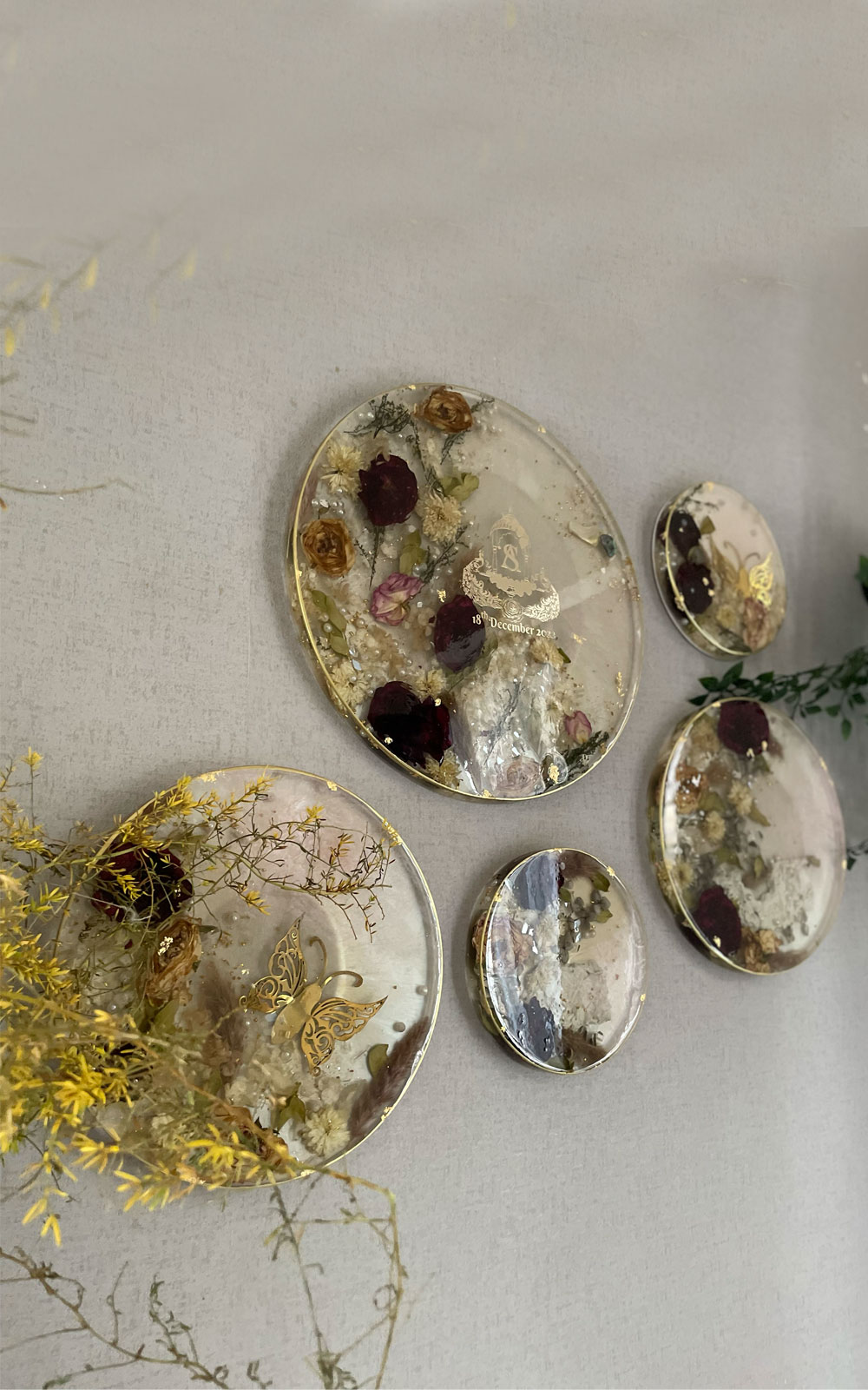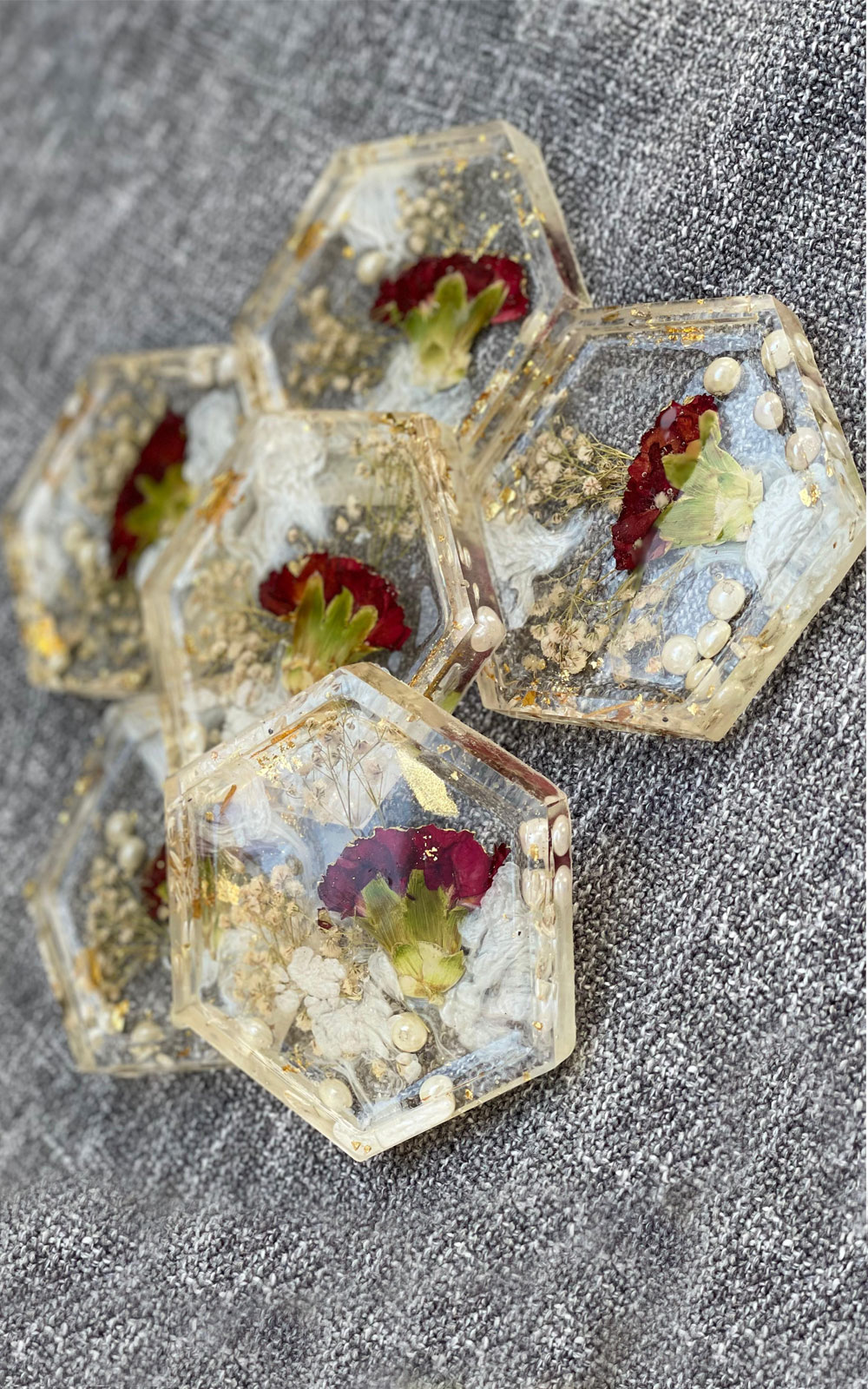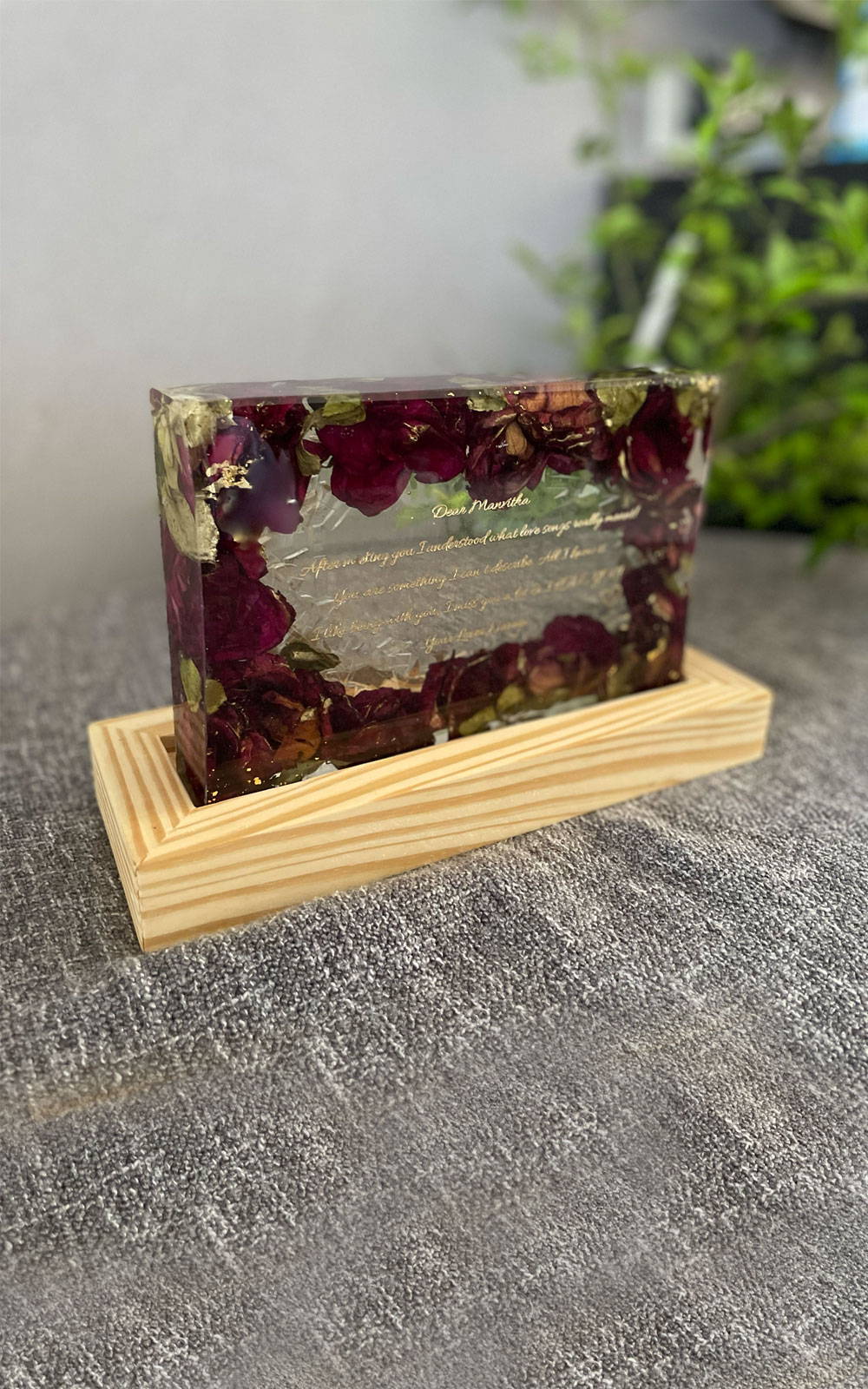 Let us help you encase your memories in the magnificent medium of resin. From personalized wedding invitation boxes to engagement trays to embedding your floral memories from your special occasion in an everlasting, bespoke piece, we can do it all.